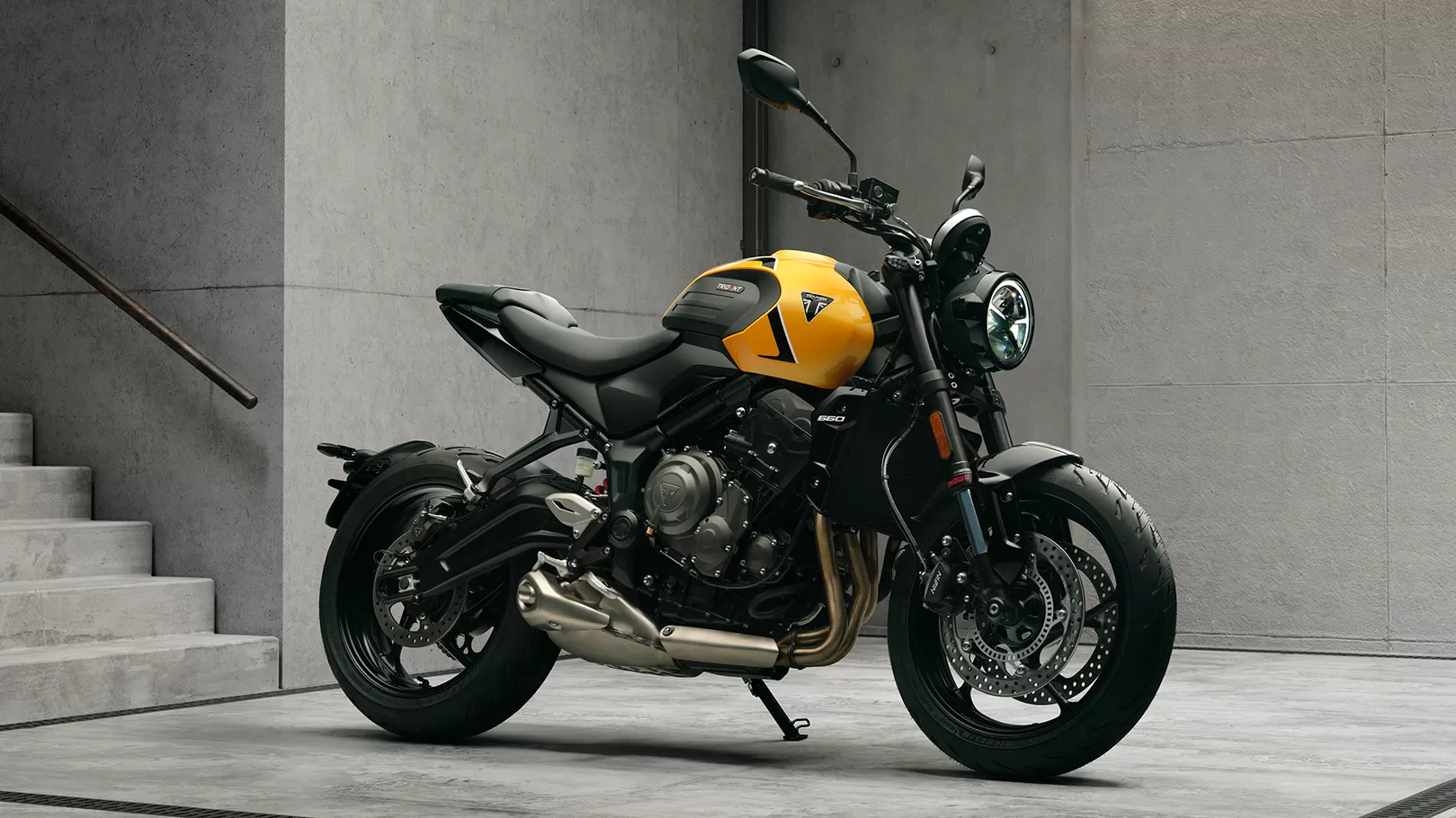 The latest updates to the Trident 660 and Tiger Sport 660 are complemented by bold new colour schemes and graphics that enhance their distinctive styling. For the Trident 660, the vibrant Cosmic Yellow and Stone Grey take centre stage as the premium paint choice, with Snowdonia White offered as standard.